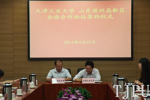 2013年9月27日,我校党委书记张宏伟在行政中心第五会议室会见到访的滨州市高新区党委副书记李茂生和愉悦家纺有限公司董事长刘曰兴等率领的11人考察团,双方就开展合作进行了洽谈,并签署3项合作协议。学校办公室主任徐先林、科技处副处长寇士军,以及纺织学院、复合材料研究所、艺术学院、环化学院、机械学院、材料学院、电气学院等7个院所的负责人出席本次洽谈会。洽谈会由科技处副处长李娜娜(挂职)主持。