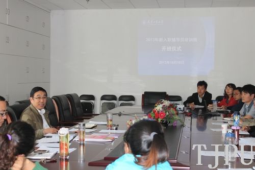 10151430,由学工部举办的“2013年新入职辅导员培训班”在艺缘活动中心302会议室开班。校党委副书记杨吉棣、校学工部部长王丽焕出席,12名新入职辅导员参加了开班仪式。开班仪式由学工部副部长张录全主持。