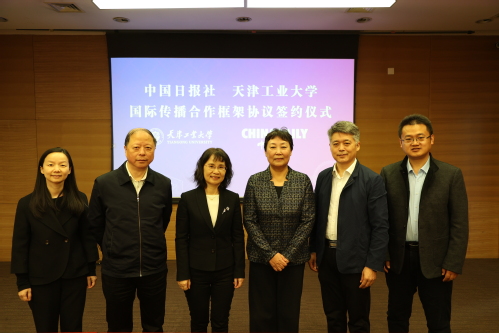 11月28日上午,我校与中国日报社国际传播合作框架协议签约仪式在会议中心第五会议室举行。中国日报社副总编辑刘伟玲、校党委书记沈江出席仪式并致辞。中国日报社副秘书长潘忠明、校党委副书记张玉波、中国日报总编室副主任郭娅利、中国日报天津站站长杨成、21世纪报天津工作站站长周中明、中国日报社事业发展部干部田晓璇,校党委宣传部、教务处、研究生院、学科建设办公室、网络安全和信息化办公室、纺织科学与工程学院、人文学院、国际教育学院相关负责人参加签约仪式。