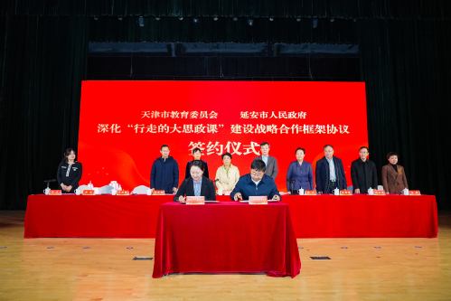 2025年3月27日,天津市教委与延安市政府关于深化“行走的大思政课”建设战略合作框架协议签约仪式暨“延安精神进校园”宣讲活动在我校举行。天津市教育两委、延安市委市政府、天津市延安精神研究会、乐鱼平台等有关负责同志出席签约仪式,天津市教育两委、延安市委市政府有关部门,天津市大中小学思政课教师和学生代表等200余人参加活动。