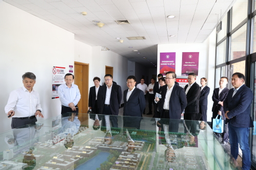 会前,张玉波在学校沙盘前向吴洪涛一行介绍了学校整体概况,希望双方携手并进,进一步深化合作,为区域经济社会发展作出应有贡献。