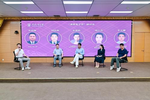 产学研研讨环节中,天津大学刘铁根教授与企道知行(天津)企业管理咨询有限公司总经理金嘉轶、启迪之星(天津)创业咨询服务有限公司执行总经理刘小杰、天津市计量监督检测科学研究院高级工程师李元耀就当前柔性光子器件的发展现状展开交流研讨,我校电子与信息工程学院李鸿强教授主持研讨。大家一致认为,亟需通过校企协同共同攻克发展瓶颈等难题。