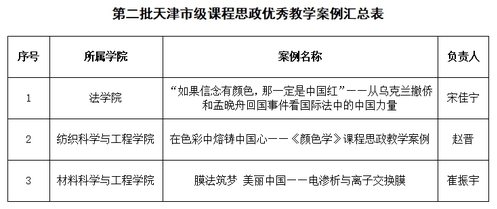近日,市教委公布了第二批天津市级课程思政优秀教学案例(本科)评选结果,我校共有3个案例获批。获批数量与南开大学、天津大学、天津中医药大学并列全市第一。