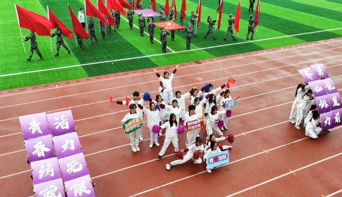 开幕式在激昂的《运动员进行曲》中拉开帷幕。36个方队迈着矫健的步伐依次从主席台前走过,队员们身着统一服装,手持特色标语,步伐整齐、精神抖擞,观众席上爆发出阵阵欢呼声。