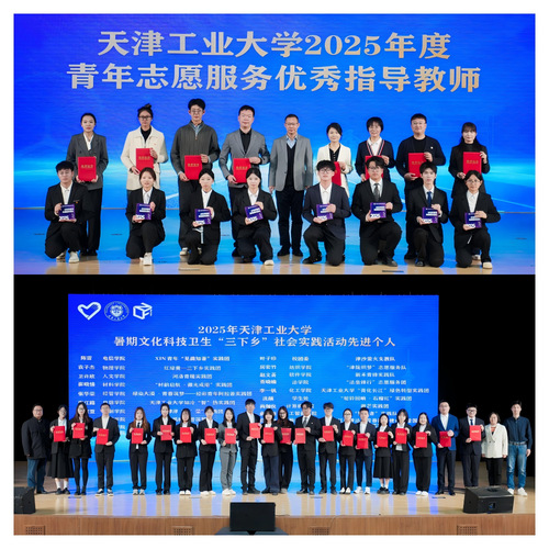 活动分为展示评比与总结表彰两个环节。14个院级青年志愿者服务团依次登台展示,通过现场展示、实景视频等多元形式,全方位呈现志愿服务与社会实践取得的丰硕成果。生动展现了天工学子在乡村振兴、社区服务、红色传承、科技助老等领域的责任担当,为在场师生呈现了一堂“沉浸式”思政大课。经评委现场打分,人文学院“青禾志愿服务团”等8支团队获评2025年度优秀青年志愿服务团队,董雯钰等8名指导教师获评2025年度优秀青年志愿服务指导教师。